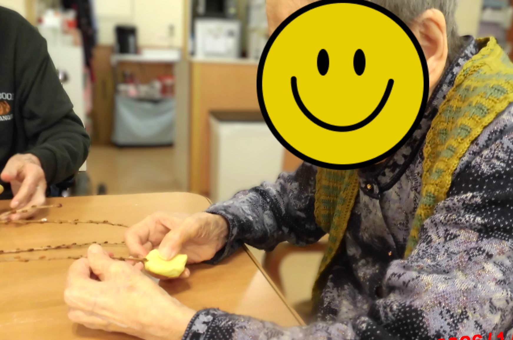 複合福祉施設ではレクリエーションとして、まゆ玉づくりを行いました。